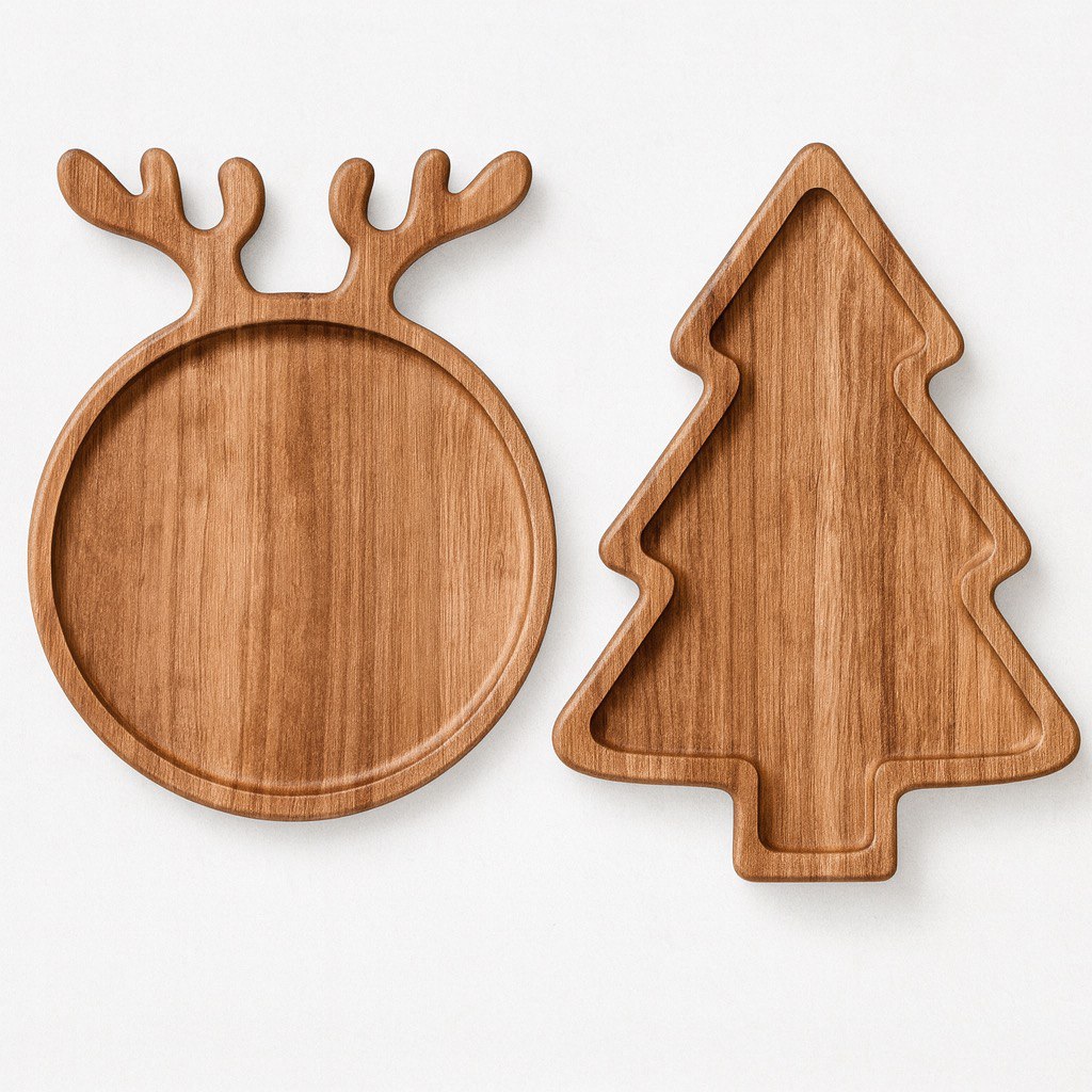Christmas Wooden Serving Board Set “Reindeer & Christmas Tree” – Holiday Charcuterie and Festive Home Decor